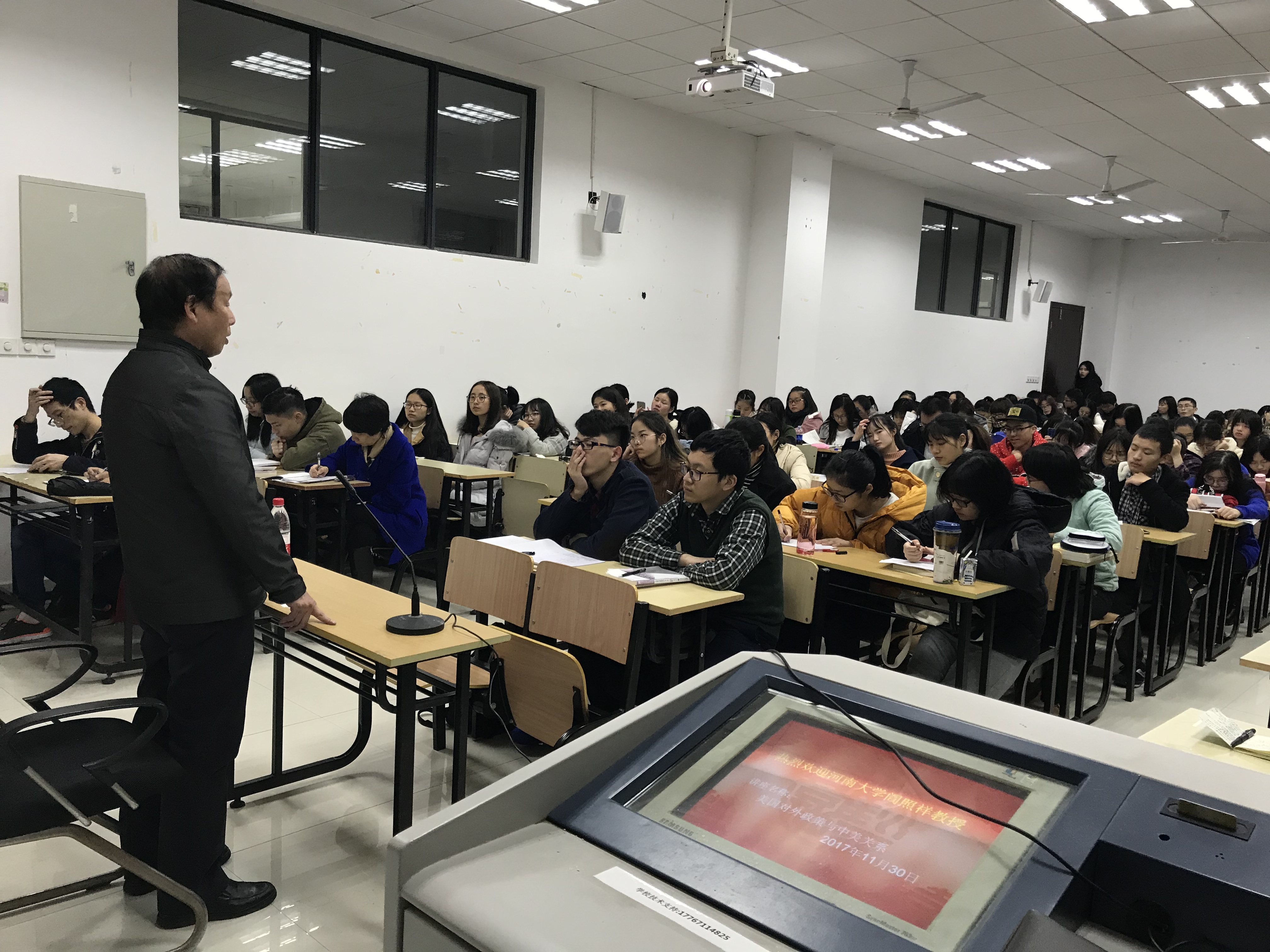 | 11月30日晚在品苑A501教室,社科部很荣幸邀请到我国知名的历史学家、国务院政府特殊律贴获得者、中国世界近现代史研究会会长、博士生导师、河南大学阎照祥教授作客我校形势与政策课堂,给我校师生作了题为“美国的对外政策与中美关系”的专题报告。聘请校外专家作报告,也是提升我校形势与政策课教学质量的重要举措之一。