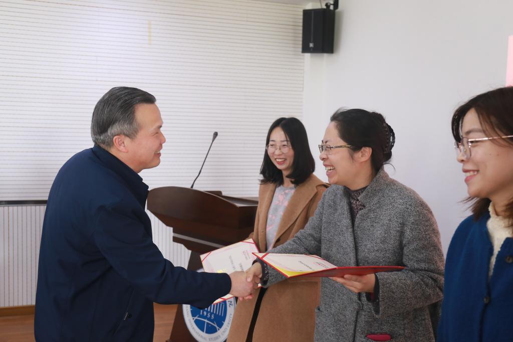 会上,赵文波与学院党政领导班子共同为来自党委宣传部、组织部、退休办公室、团委、教务处以及各学院辅导员共33位老师颁发形势与政策备课浙外讲师团成员聘书并合影留念。