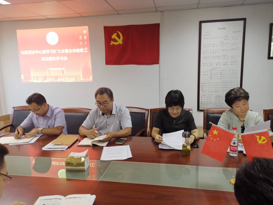 举行理论中心组学习扩大会,围绕“不忘初心、牢记使命”主题,深入研讨如何深化用习近平新时代中国特色社会主义思想铸魂育人。学院理论中心组成员、全体党员、教职工参加学习会,学院党总支书记主持学习会。