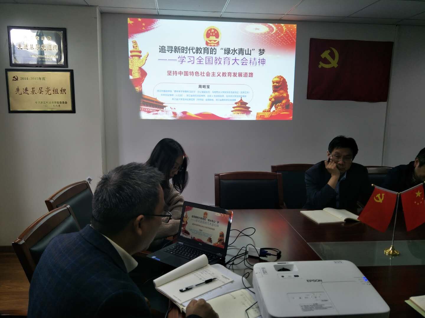举行理论学习中心组学习扩大会暨教职工政治学习会,专题学习全国教育大会精神。学院党总支委员、副院长方浩主持会议。