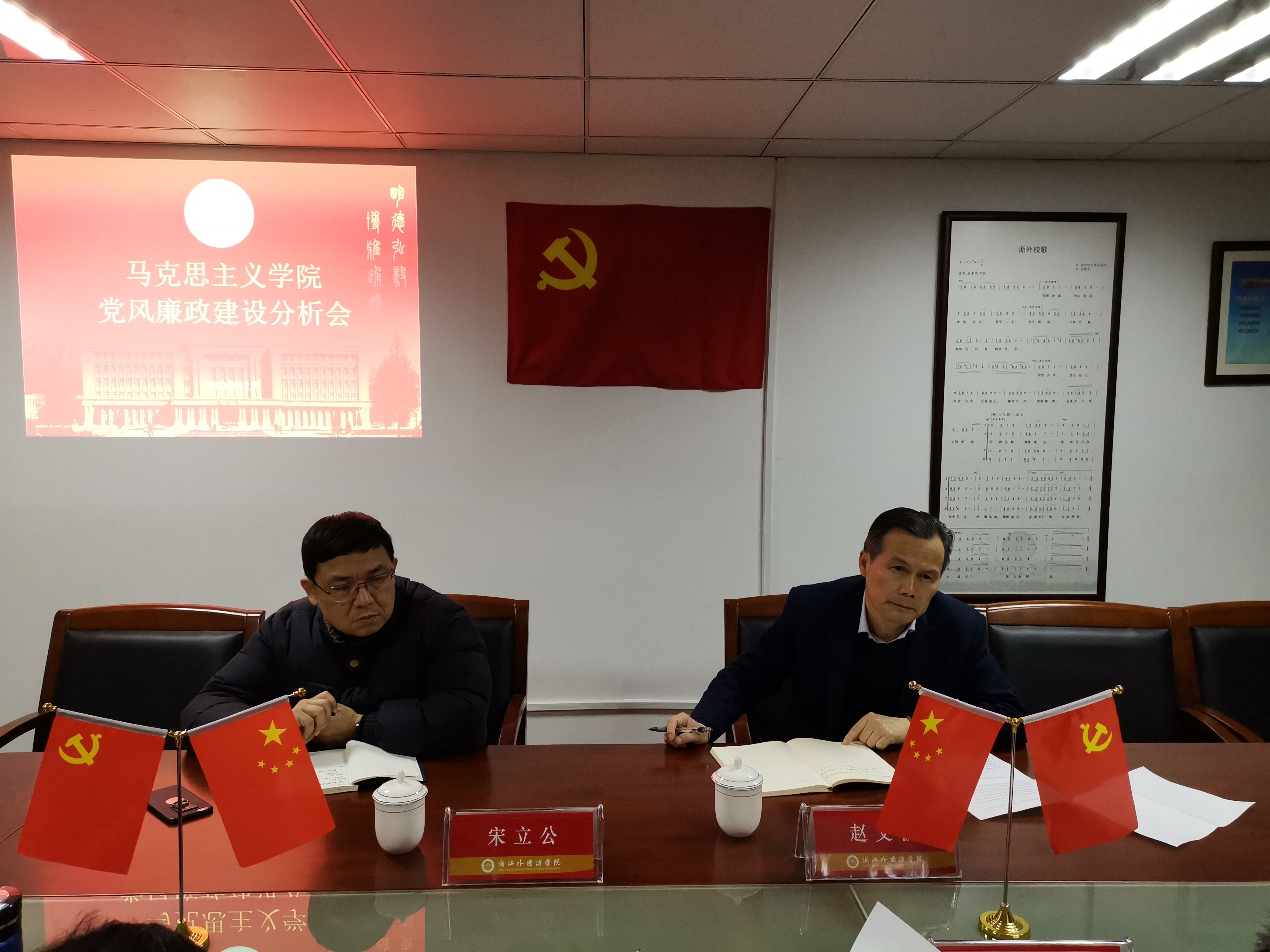 召开2018年度党风廉政建设情况分析会,学院领导班子就今年从严治党主体责任落实情况、履行“一岗双责”情况等进行分析汇报。党总支负责人周明宝主持会议。校党委副书记赵文波,校纪委委员宋立公,学院班子成员、总支委员、党支部书记、办公室负责人参加会议。