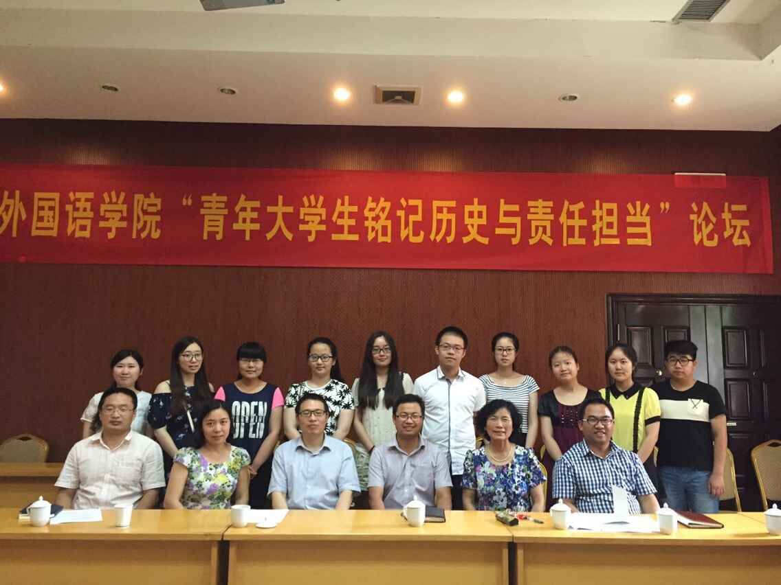 党委宣传部、学工部、社科部、德育研究所联合举办“青年大学生铭记历史与责任担当”论坛。参加论坛的有宣传部、学工部、社科部领导、老师、学院辅导员和学生代表20多人。