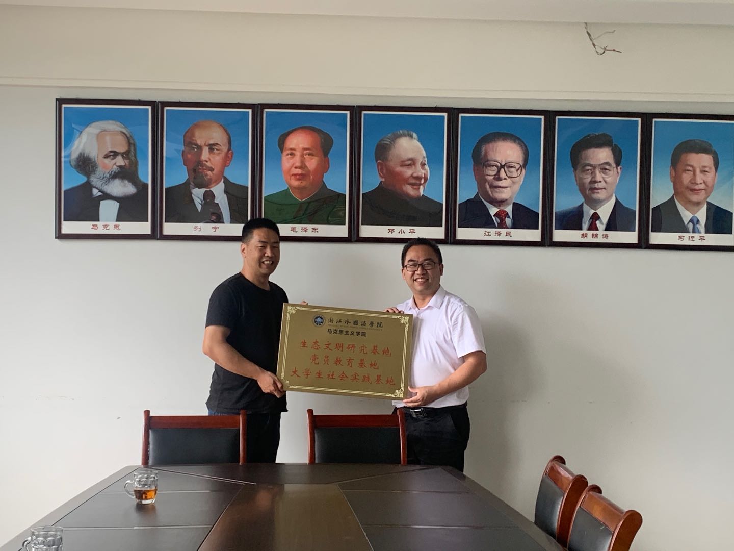 一都村村委主任与学院副院长进行了签约,双方书记为基地揭牌,并就院地合作内容进行了深入交流。