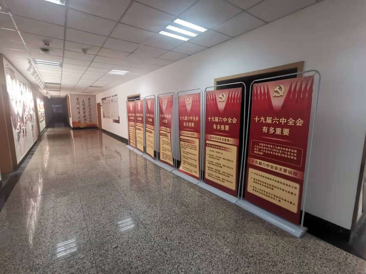 迅速制作学习海报广泛宣传,营造浓厚氛围。于11月11日下午召开全体教职工大会,布置十九届六中全会精神学习研讨相关事宜。11月12日上午组织全体教师收看发布会直播,要求教师结合本职工作,认真学习并深刻领会全会精神,形成热学、热议全会精神的浓厚氛围,做好教育教学、学习宣传、研究阐释等各项工作。