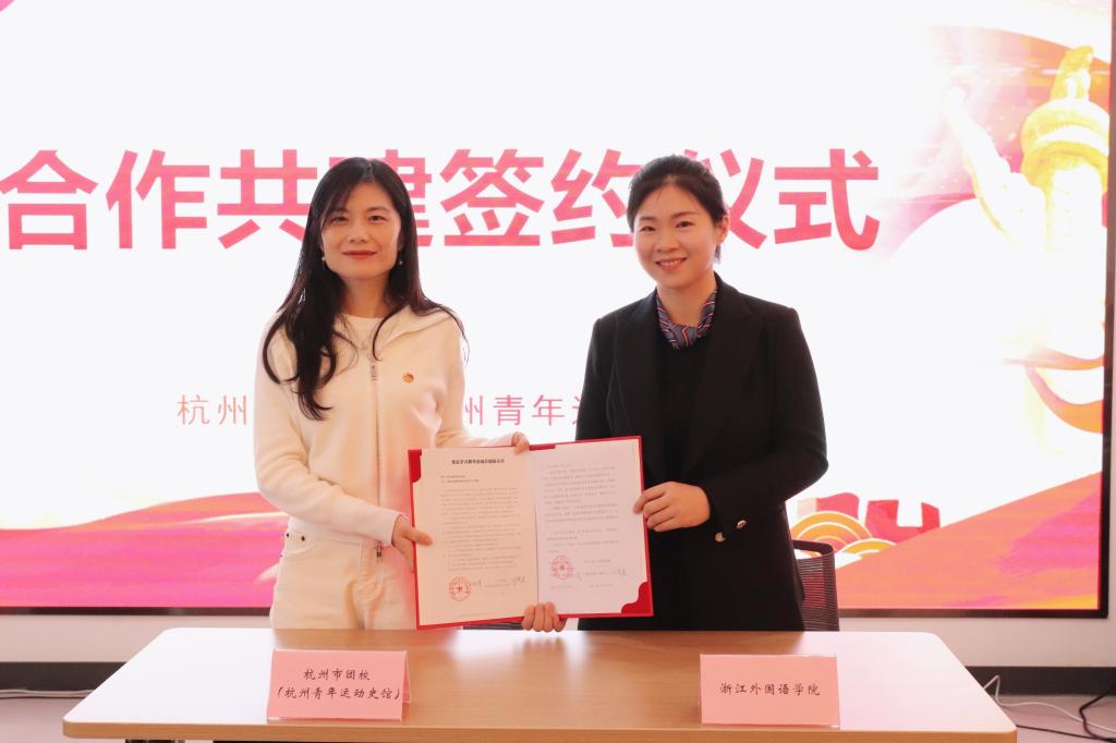 与杭州青年运动史馆党史学习教育基地、思政教学实践基地合作共建签约揭牌仪式在青运史馆顺利举行。学院党总支书记田俊杰、副院长方浩、省思政课名师工作室负责人尹铁,杭州市团校党总支书记、副校长,杭州青年运动史馆馆长沈在蓉、市团校副校长吴士琦等领导出席活动仪式,学院办公室及杭州青运史馆相关工作人员参加仪式。