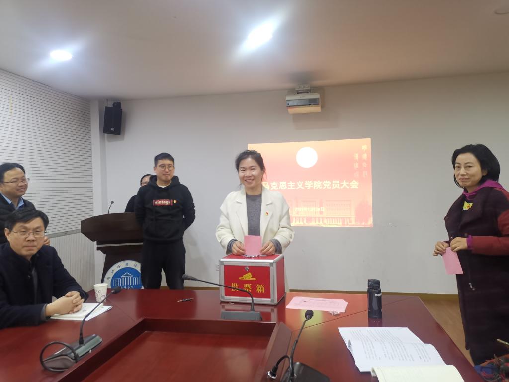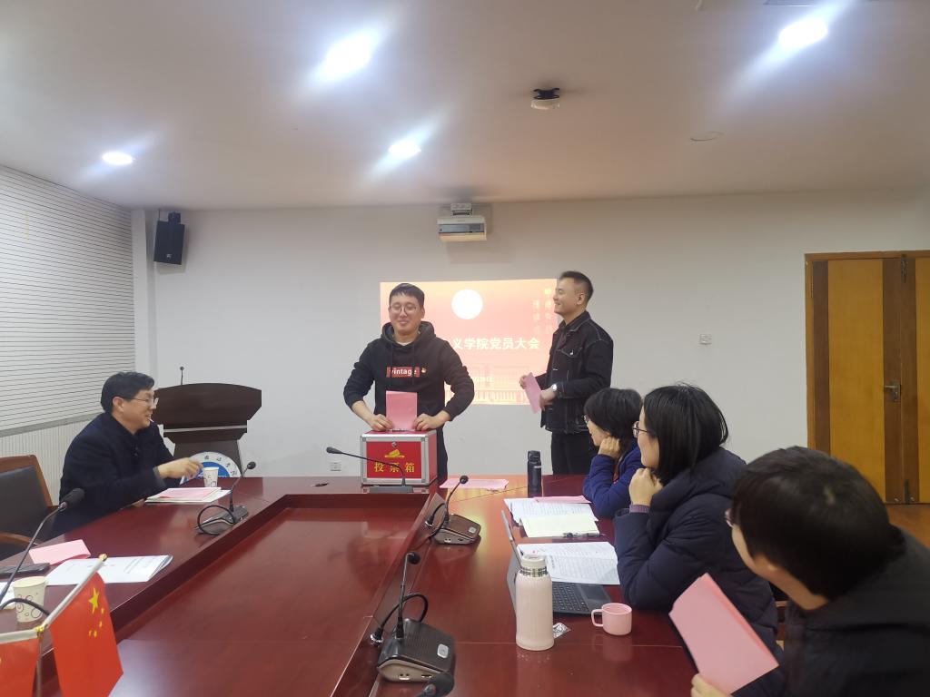 党建工作新局面》的工作报告。报告主要从党建引领、思政课建设、学科建设、师资队伍、社会服务等多个方面总结回顾了三年来的工作和取得的成绩,指出了当前学院发展存在的问题和不足,并从“党建引领,推进学院内涵式发展;立德树人,提升思政课教学实效;聚焦方向,推进马克思主义学科建设;引育并举,建设高素质人才队伍;保持优势,探索社会服务新领域”等方面,针对性地提出了学院今后的发展方向和工作思路。与会党员认真听取并审议了工作报告。
