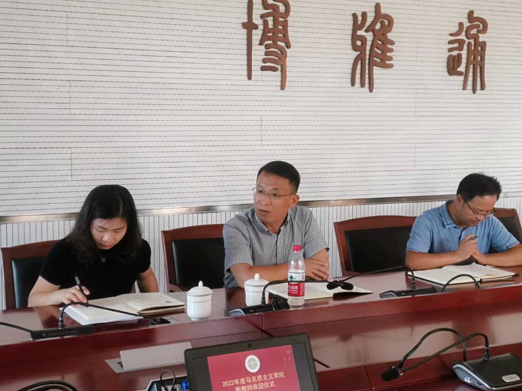在望A412会议室举行新教师入职欢迎仪式。党委委员、宣传部部长、马院院长毛振华、党总支书记田俊杰、副院长方浩及全体教师参加了本次仪式。