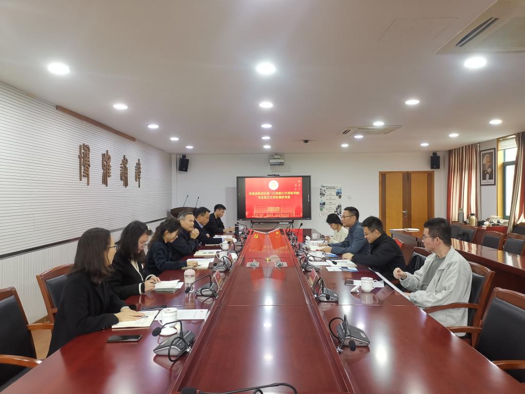 党总支书记田俊杰介绍了学院前期与余杭区在党建品牌打造、理论宣讲、社会服务等方面的合作情况,希望能进一步发挥学院学科优势,在大中小学思政课一体化共建等方面开展合作。