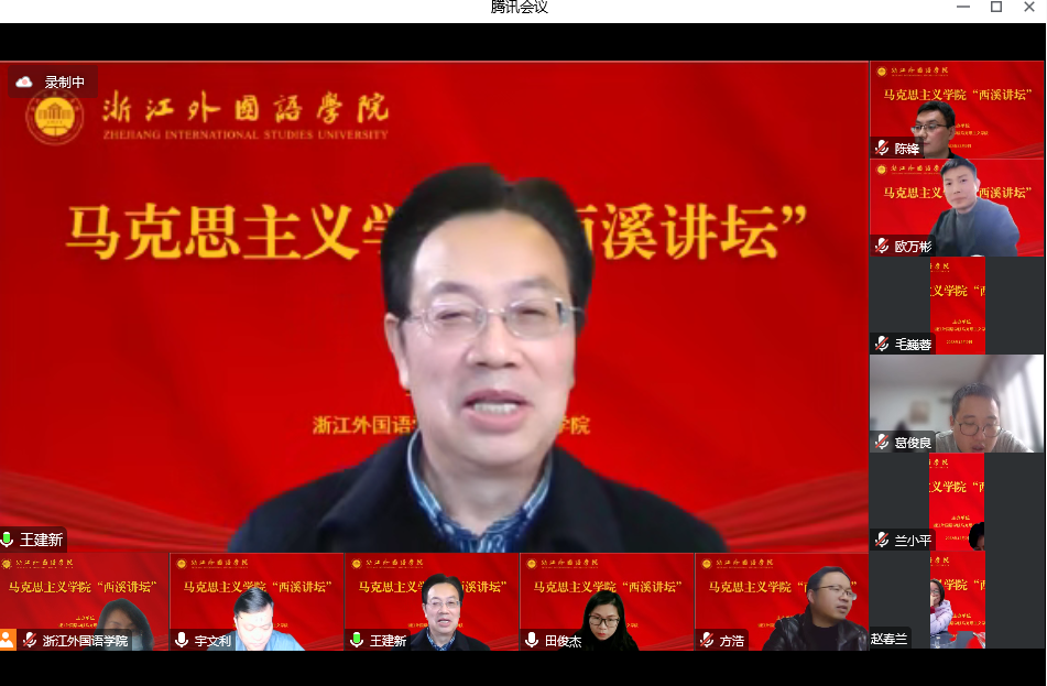 党总支书记田俊杰致欢迎辞,院长王建新主持本次讲坛。