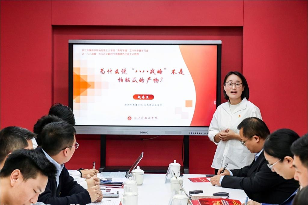 下一步,在深入开展学习贯彻习近平新时代中国特色社会主义思想主题教育中,学校将把“学思想”摆在首位,以培育锻造新时代有为青年为目标,全力打造“浙外青年·爱学习”学习品牌。依托300余个青年学习小组,通过“青马学理”工作坊、青年学习大讲堂等平台,开展好1次学习交流会,写好1篇心得笔记,原原本本学理论;通过“青年学子学青年习近平”学习教育专项实践、乡野调研等活动载体,开展好1次研学活动、1次主题调研、1次专项社会实践,循迹溯源学思想;通过多语种宣讲、“80、90、00”宣讲等形式,重温1次习近平总书记重要指示批示精神,开展1次主题大宣讲、1次宣讲大“走亲”,入脑入心悟思想;引导青年小组成员全面系统掌握习近平新时代中国特色社会主义思想的基本观点、科学体系,把握好这一思想的世界观、方法论,坚持好、运用好贯穿其中的立场观点方法,不断增进对党的创新理论的政治认同、思想认同、理论认同、情感认同。