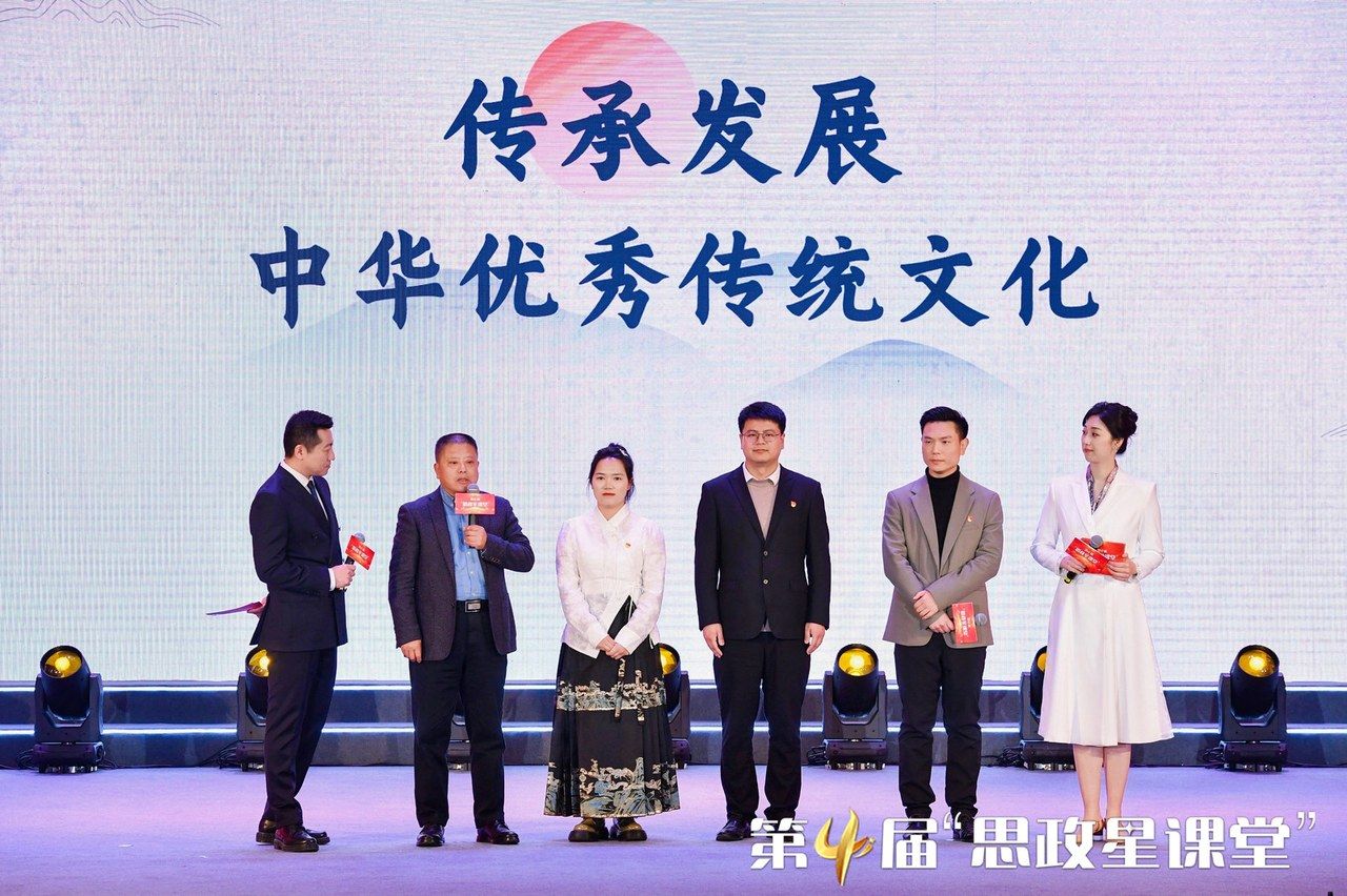 颁奖仪式上,欧万彬老师作为全省高校思政课教师代表与来自中学、小学的思政课教师代表共同围绕《传承发展中华优秀传统文化》的主题作现场讲课展示。三位老师以“一题三讲”的形式,分别通过“一出越剧”“一部家训”“一本动漫”为大中小思政课一体化建设呈现了一堂别开生面的思政课。