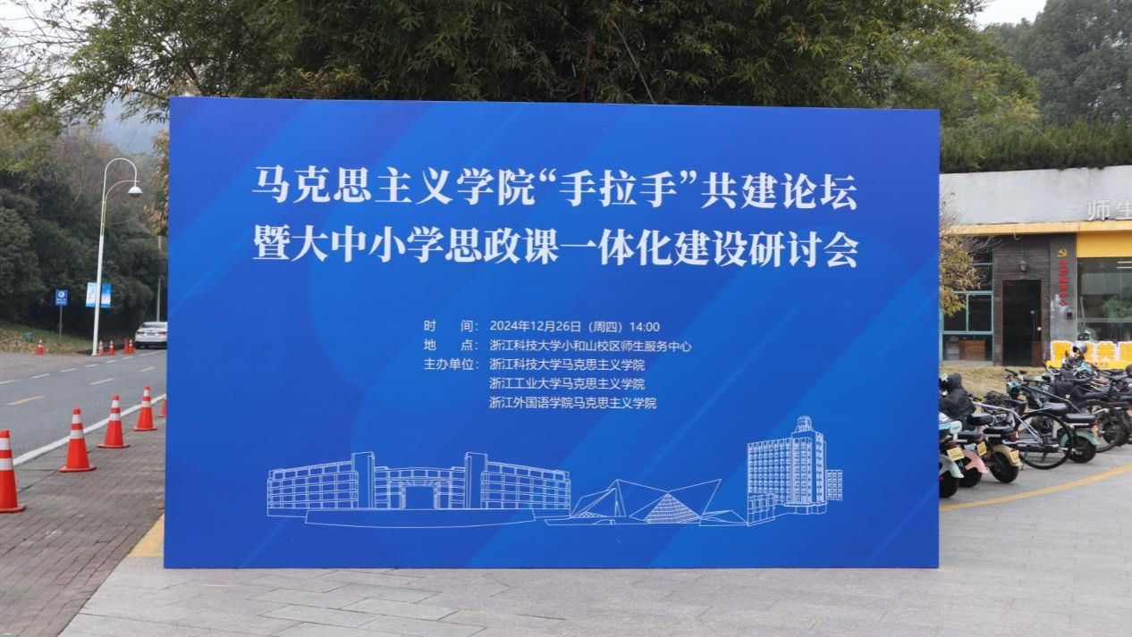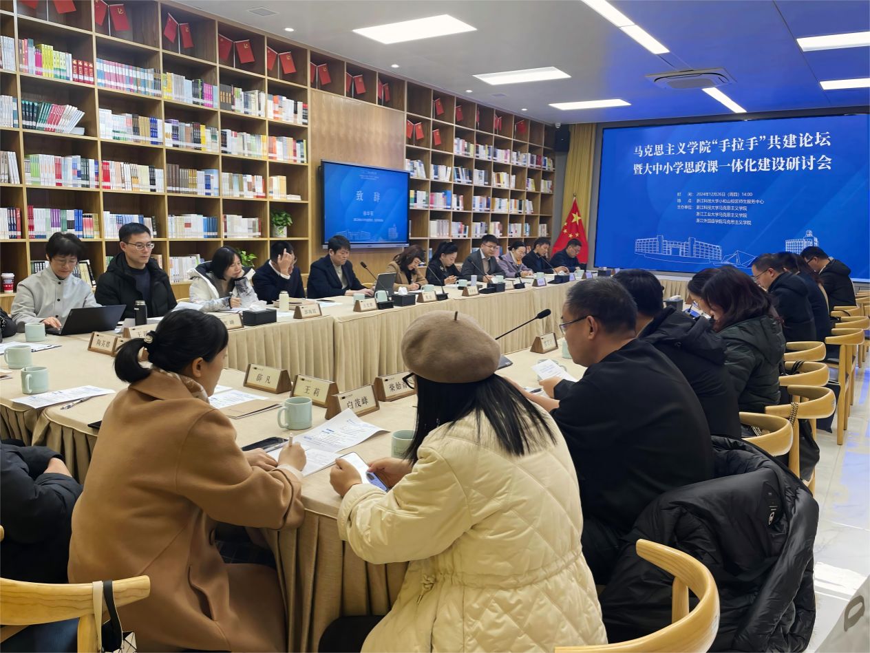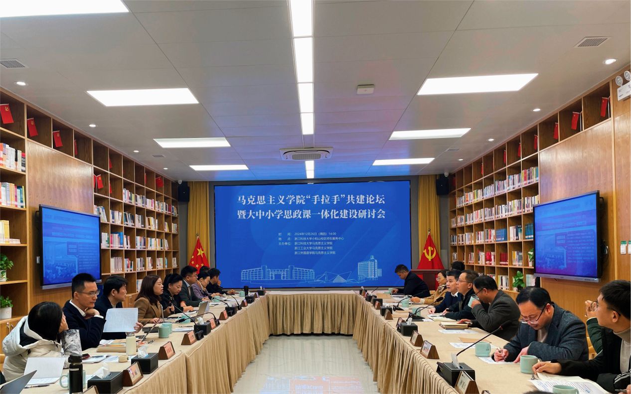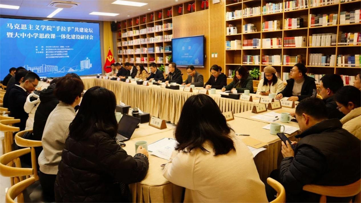 “手拉手”共建论坛暨大中小学思政课一体化建设研讨会在浙江科技大学小和山校区师生服务中心召开。