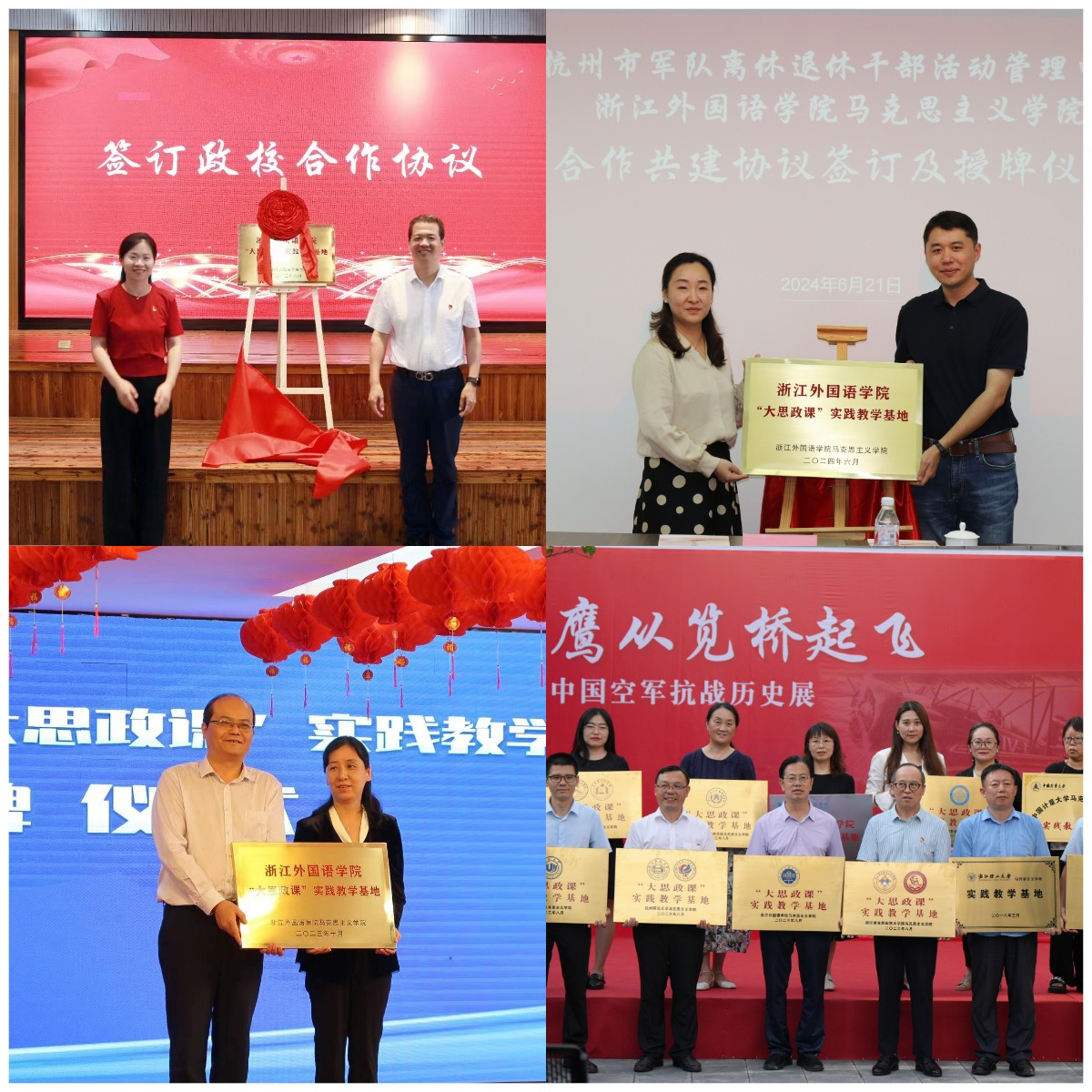 ,先后与杭州“五四宪法”历史资料陈列馆、富阳区常安镇、杭州市军队离退休干部活动管理中心、萧山区钱江教育指导中心等多家单位签约共建“大思政课”实践基地。联合浙江工业大学、浙江科技大学88影视
