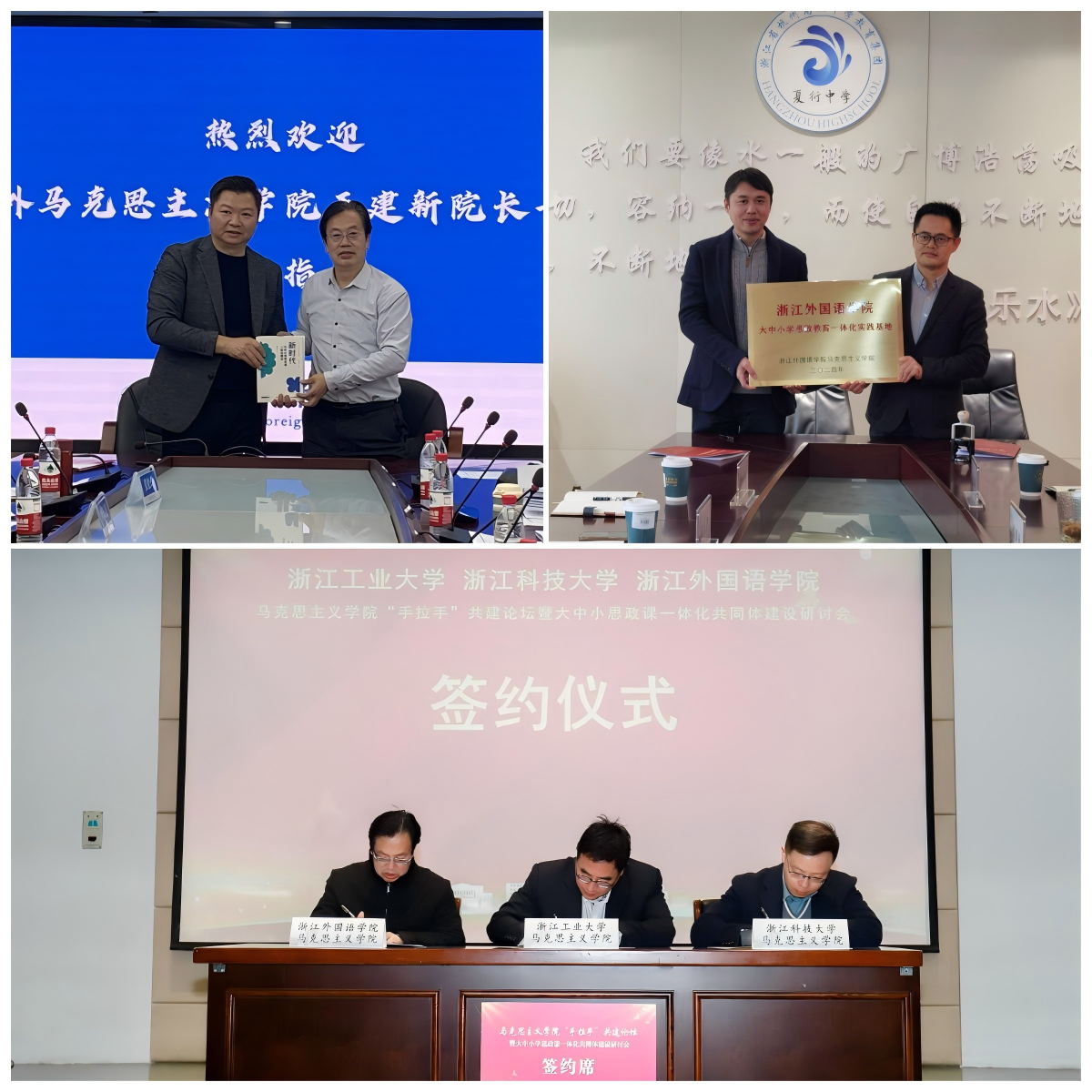 开展“手拉手”共建,召开“大中小学思政课一体化”共同体建设研讨会。与杭州外国语学校、夏衍中学建立“大中小学思政教育一体化实践基地”。