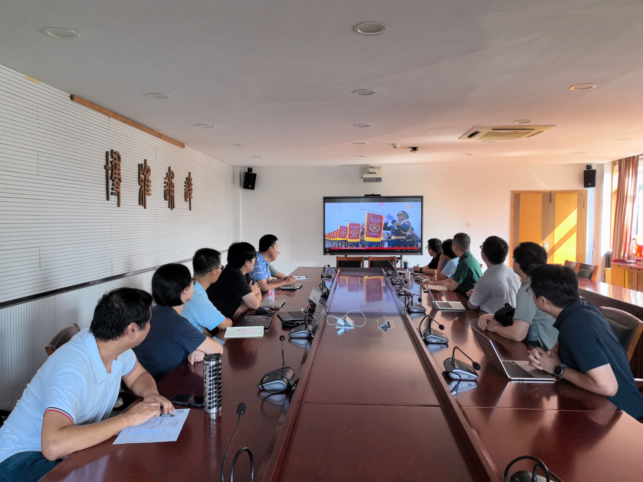的教职工们齐聚一堂,共同收看纪念中国人民抗日战争暨世界反法西斯战争胜利80周年阅兵式直播。当80响礼炮响彻云霄,纪念大会正式拉开帷幕。直播过程中,全体教师全神贯注,认真聆听习近平总书记的重要讲话,仔细观看纪念大会的每一个环节。他们为纪念大会所展现出的国之大典的庄严、军之威仪的庄重以及大国重器的震撼而深感自豪,由衷地发出赞叹之声。观看直播后,党员教师们更是纷纷围绕阅兵仪式展开了热烈的讨论。