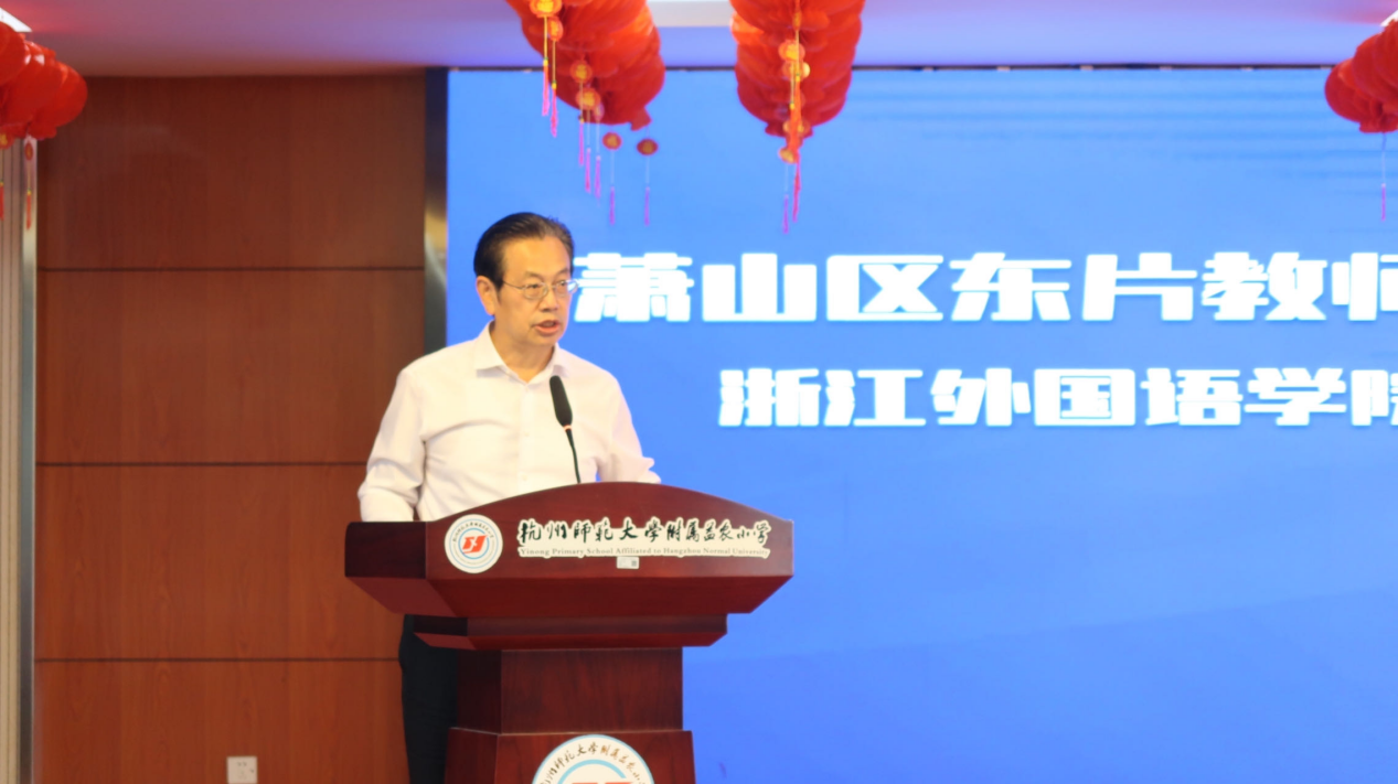 副校长毛振华、萧山区教育局党委副书记金丹、院长王建新、社会服务与合作处副处长姚安娣、副院长方浩、院长助理欧万彬、萧山区教育发展中心党委委员陈琼、萧山东片教育指导中心主任叶国苗、萧山区东片督学责任区主任沈煜清出席参加。东片教育指导中心及片区中小学、幼儿园600余名教师以线上线下形式参加启动仪式。
