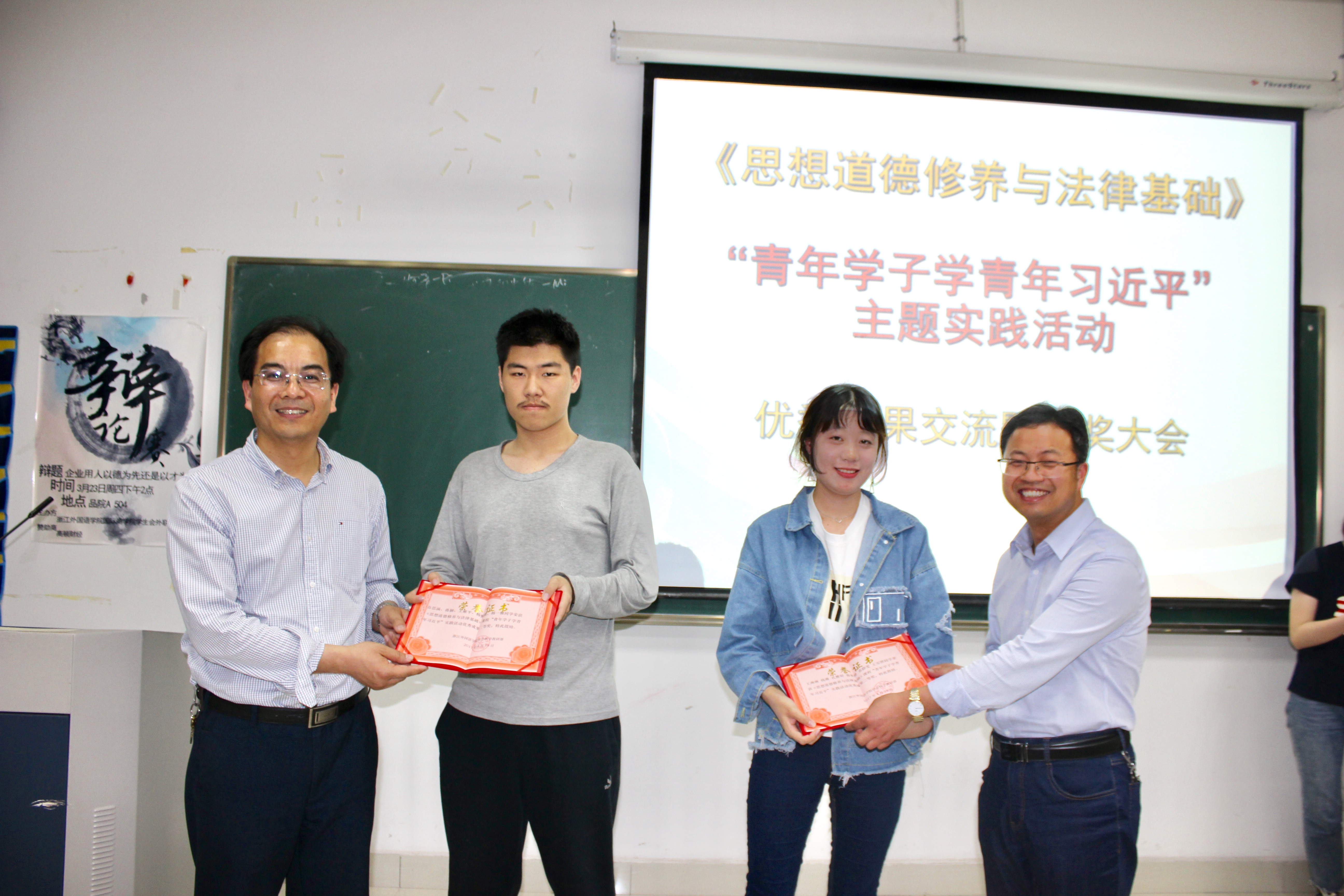 本学期,《思想道德修养与法律基础》教研室根据学校和社科部相关要求,结合课程特色,开展为期两周的《放飞青春 服务社会——“青年学子学青年习近平” 主题实践活动》道德活动实践,一千余名同学分为近两百个小组开展教学实践。在班级层面汇报交流基础上,评选出优秀实践队伍和实践成果,其中一等奖六组,二等奖十二组。