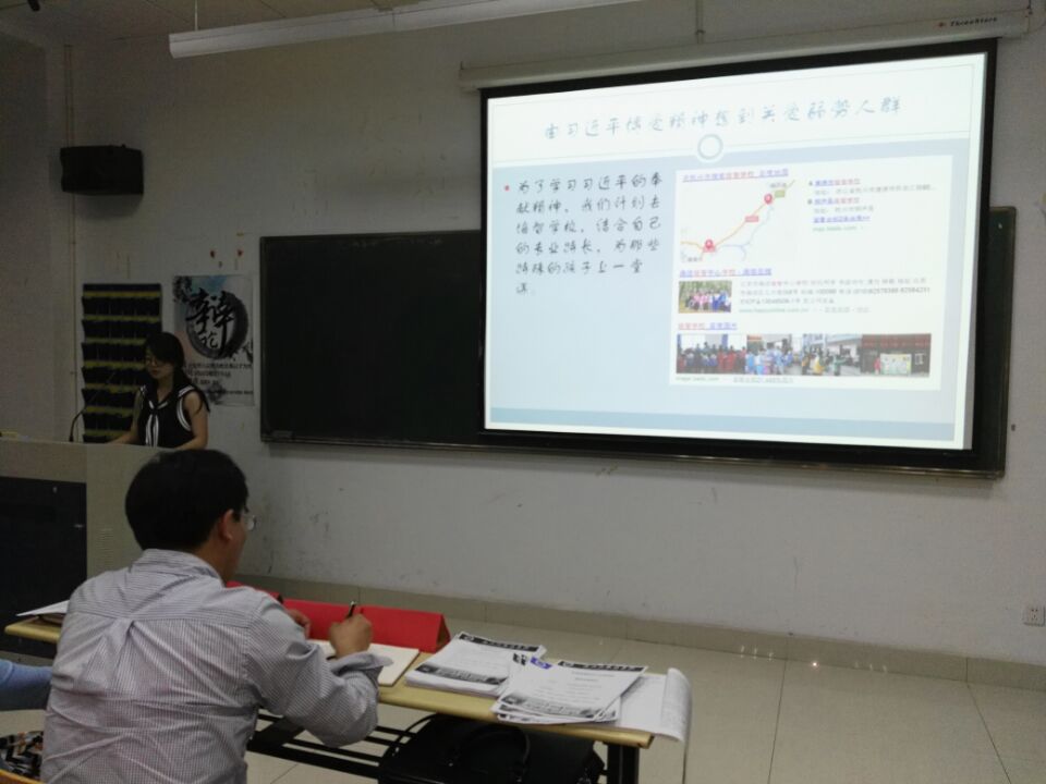 在三个小时的交流会中,共14组同学上台汇报主题实践活动,涉及理想信念、志愿服务、问题调研等各个方面,活动主题明确、内容丰富,每位同学也在实践活动中深受教育。学生汇报结束后,朱萌老师进行了精彩点评,潘迎华主任和徐勇部长分别发表讲话,肯定了同学们在实践活动中紧紧围绕“青年学子学青年习近平”主题实践活动的总体要求,从课程教学出发,在学、思、悟、践中深刻领会专题教育活动的重要精神,落实到实践活动中,认识国情、省情,真正内化于心,外化于行,学习伟人,反观自身,将实践活动变为触动自己灵魂的教育,树立自己的正确的人生观、价值观。