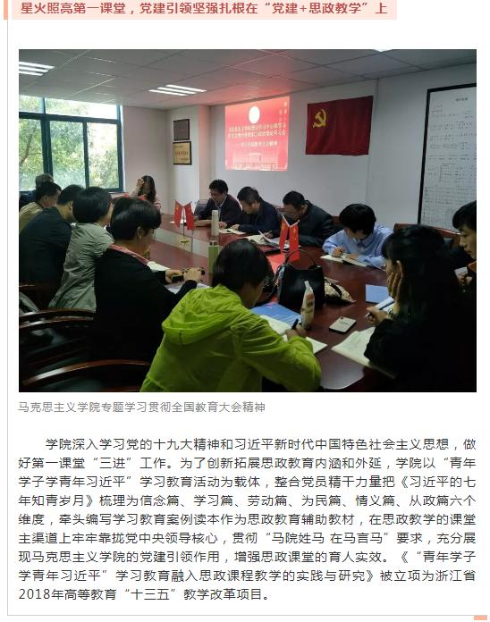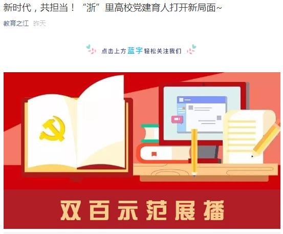 近日,教育之江官方微信平台以“新时代,共担当!‘浙’里高校党建育人打开新局面”为题,报道了88影视 88影视 党总支“星火铸魂”党建共同体。