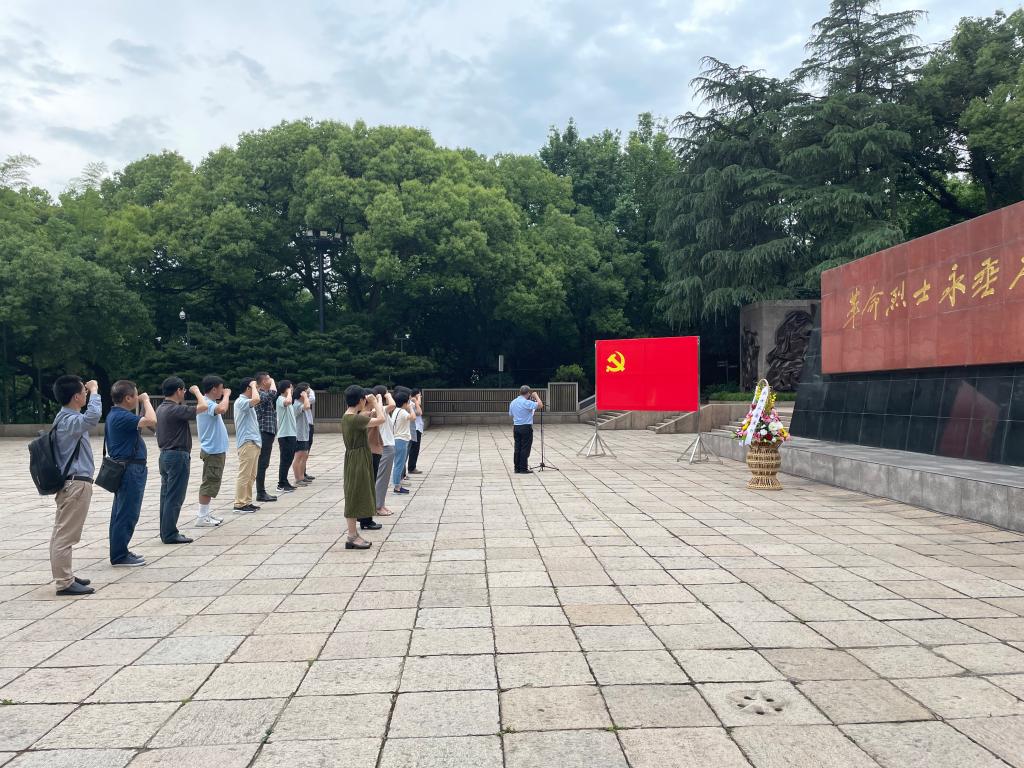 活动中,支部全体党员观看了《先驱——浙江先进分子与中国共产党的创建》系列专题片,深切缅怀浙江革命先烈的光辉业绩和卓越功勋。随后的公祭活动中,全体支部党员肃立在烈士纪念碑前齐唱国歌,向革命烈士敬献花篮、默哀、三鞠躬;在支部书记的带领下,齐声诵读毛主席在张思德同志追悼会上的演讲稿《为人民服务》选段;面对鲜红的党旗,重温入党誓词。