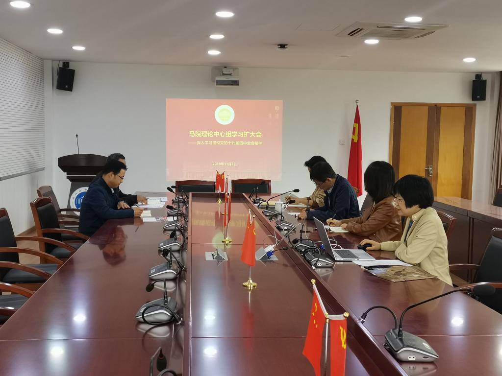 召开理论学习中心组扩大会,深入学习贯彻十九届四中全会精神。会议由党总支书记周明宝主持,学院理论中心组全体成员、支部书记参加了会议。