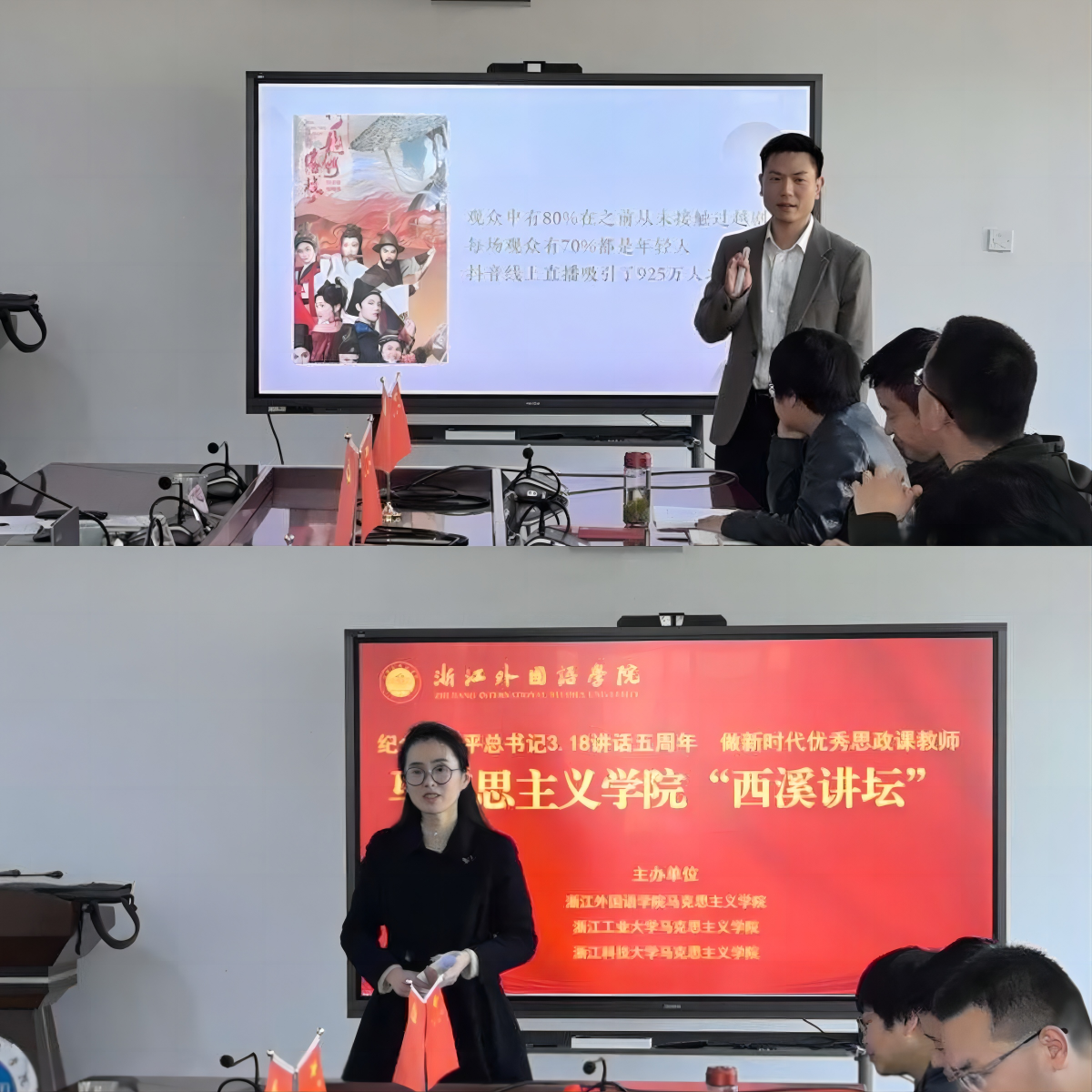 的欧万彬老师,结合自身思政课教学比赛经验,分别进行了教学展示,尹铁教授作点评,从实践层面分享如何讲好一门思政课。
