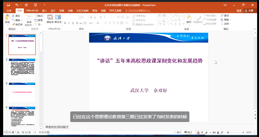 武汉大学佘双好教授围绕“习近平总书记3.18讲话五年来高校思政课深刻变化和发展趋势”谈到,五年来高校思想政治理论课取得的成绩可以用“两岸猿声啼不住,轻舟已过万重山”来形容。佘双好教授从党和国家、教育部,以及高校思政课建设两个层面、八个方面总结了思政课取得的主要成就和深刻变化,提出新时代、新征程思政课要在五年建设的基础上,实现内涵式、高质量和品质发展。